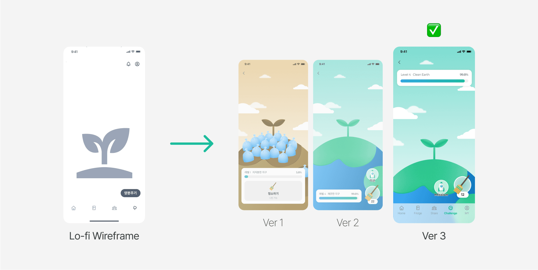 The challenge section transformed into an interactive story of cleaning up the Earth. Users earn brooms through sustainable food missions to sweep away pollution, creating a visual connection between daily actions and environmental impact.