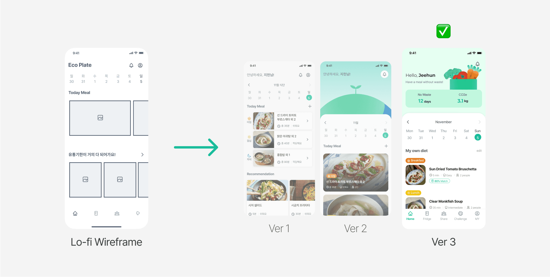 The main page design evolved from basic wireframes to an intuitive interface, highlighting meal suggestions and planning tools for easy access.